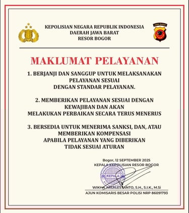Anggota Satpas Polres Bogor yang telah menunjukan dedikasi terbaik dalam melaksanakan tugas sebagai petugas layanan penerbitan SIM pada kelompok kerja Identifikasi. Yang bersangkutan menunjukan sikap disiplin, tepat waktu, dan tidak pernah menerima komplain dari pengguna layanan sehingga Satpas Polres Bogor memberikan apresiasi menjadi petugas layanan terbaik periode tahun 2024.